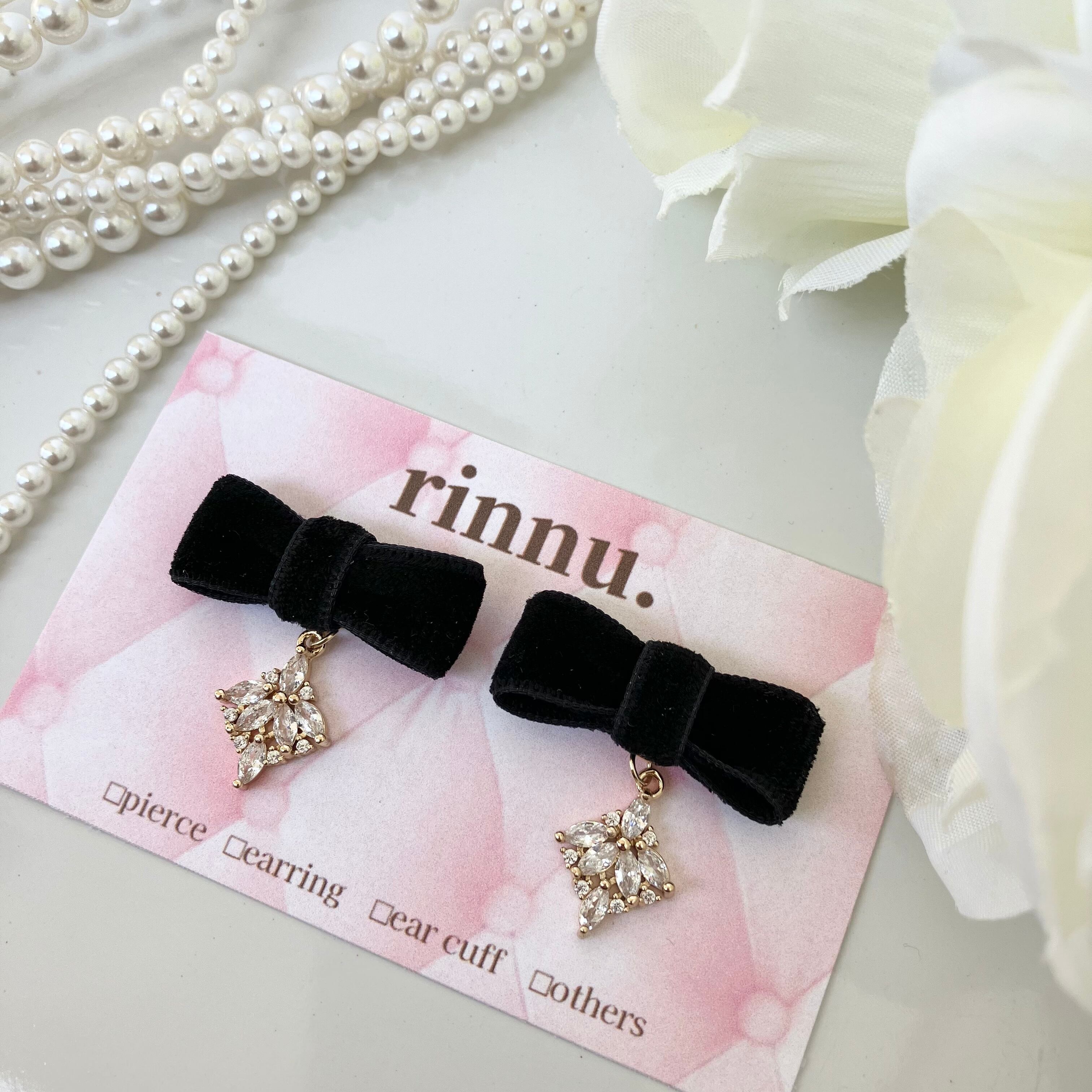 【46】 Velours ribbon zirconia accessory pierce&earring